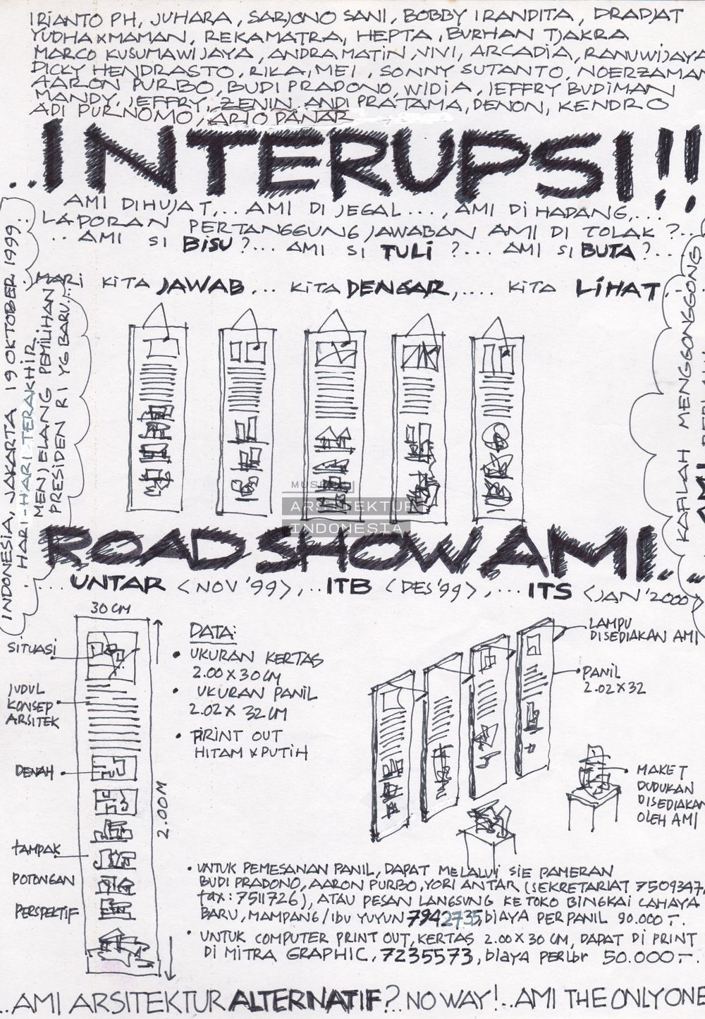 | DESKRIPSI | Poster rencana pameran keliling AMI ke beberapa kampus selama 1999-2000. Karya-karya yang dipamerkana adalah karya yang sama dari pameran di Den Haag, Belanda |