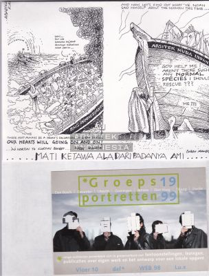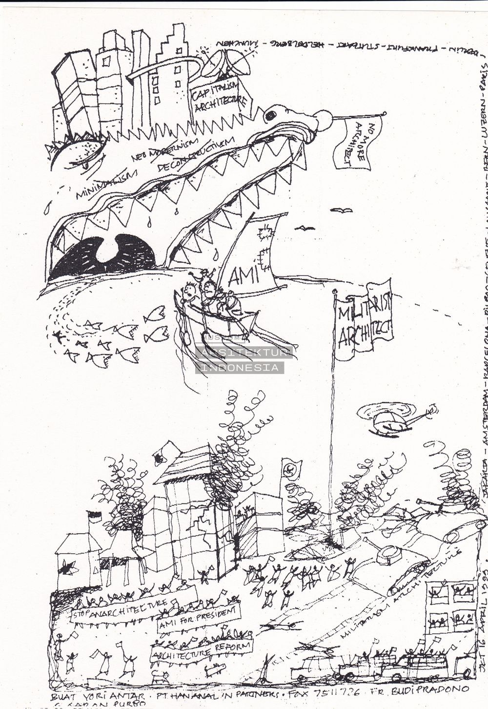 | DESKRIPSI | Desain: Bobby R. Irandita; Karikatur motivasi dan dukungan kepada AMI untuk pelaksanaan Pameran di Den Haag, 1999. |