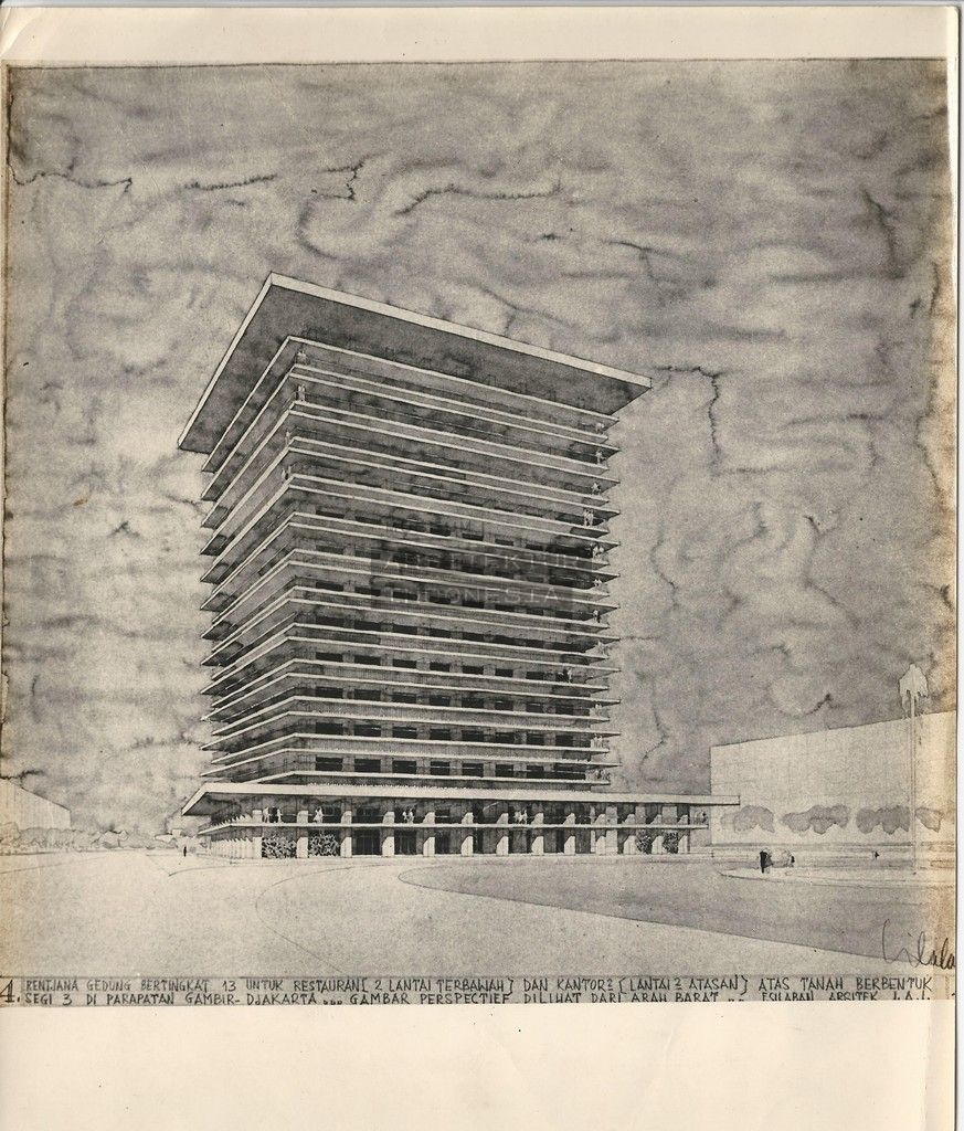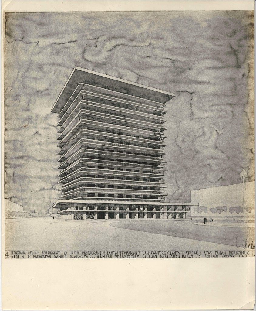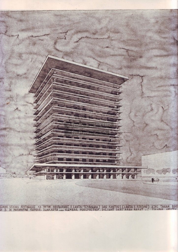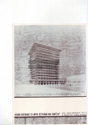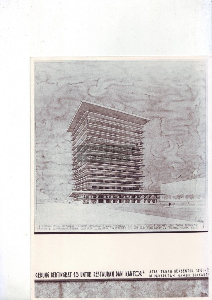 | JUDUL | Rentjana Gedung Bertingkat 13 untuk Restauran (2 Lantai Terbawah) dan Kantor2 (Lantai2 Atasan) atas Tanah Berbentuk Segi-3 di Parapatan Gambir. Djakarta. |