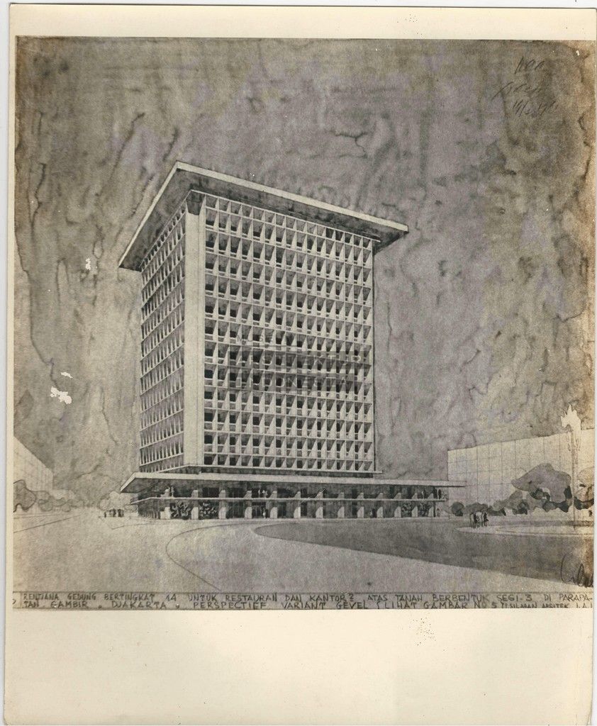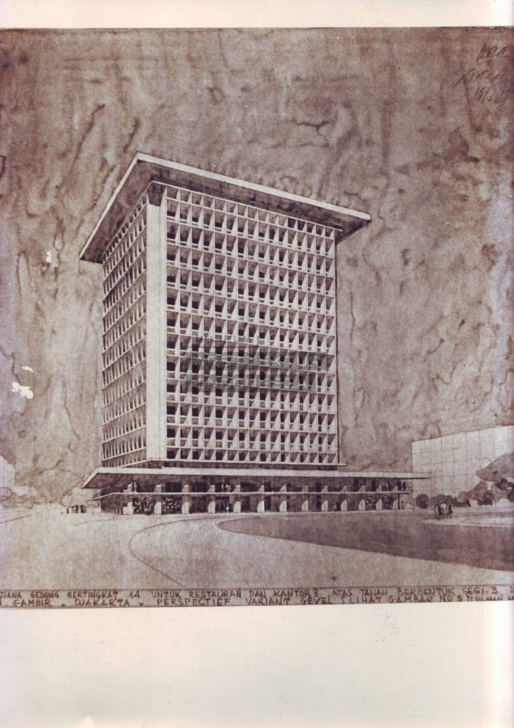 | JUDUL | Rentjana Gedung Bertingkat 14 untuk Restauran dan Kantor2 atas Tanah Berbentuk Segi-3 di Parapatan Gambir. Djakarta. |